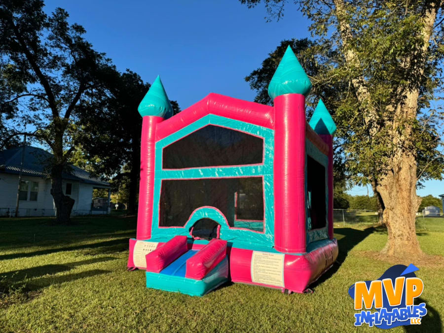 Elevate your next special occasion with our stunning Bright and Colorful Bounce House. Whether you're planning a birthday bash, school event, or community gathering, this incredible teal and pink-colored bounce house is the perfect addition to ensure fun and excitement for kids and toddlers alike. At 14x14 feet, it's spacious enough to accommodate multiple children, providing hours of entertainment and endless smiles.